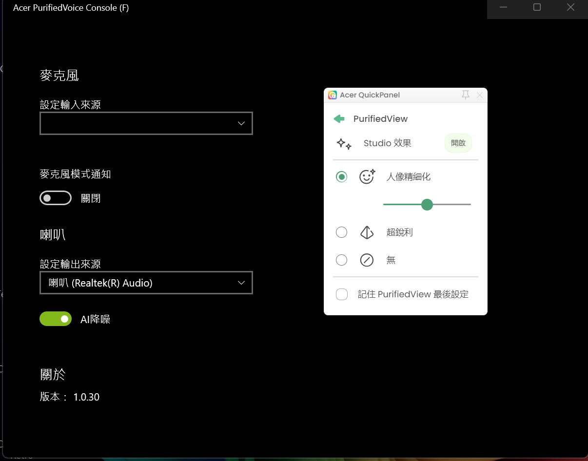 ▼ Acer PurifiedVoice麥克風效果設定。