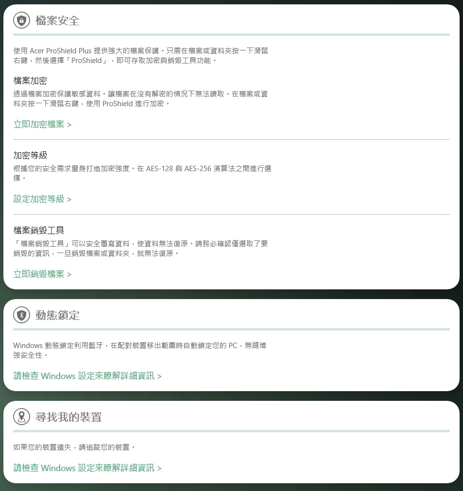 ▼ 搭載 Acer ProShield Plus,輕鬆為檔案存取加密、銷毀。