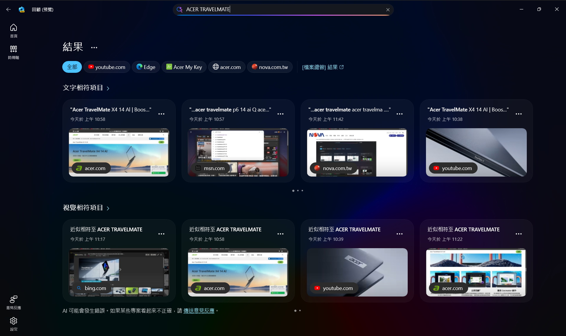 ▼ recall回顧:回顧 (預覽) 讓你輕鬆連結到你記得曾在 Copilot+ PC 上看到的內容,有助於節省操作時間。必須啟用 Windows Hello 臉部辨識或指紋辨識安全登錄後才能使用回顧功能,以搜尋並重新取用你在裝置上檢視過的內容。