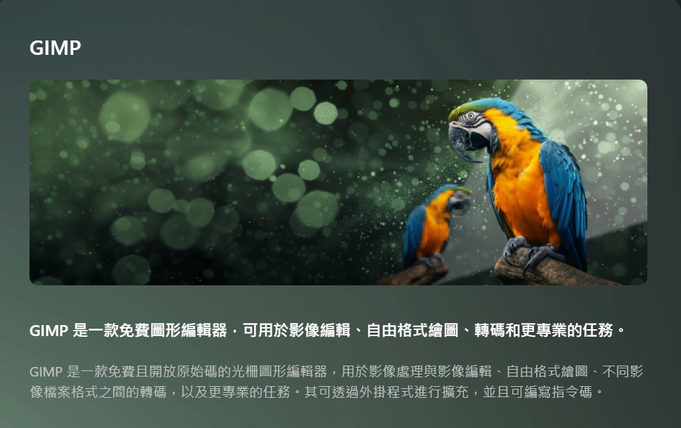 ▼ GIMP AI影像處理軟體,可以進行多種影像編輯、照片修飾,圖像合成和繪圖,實現你的各種創意。