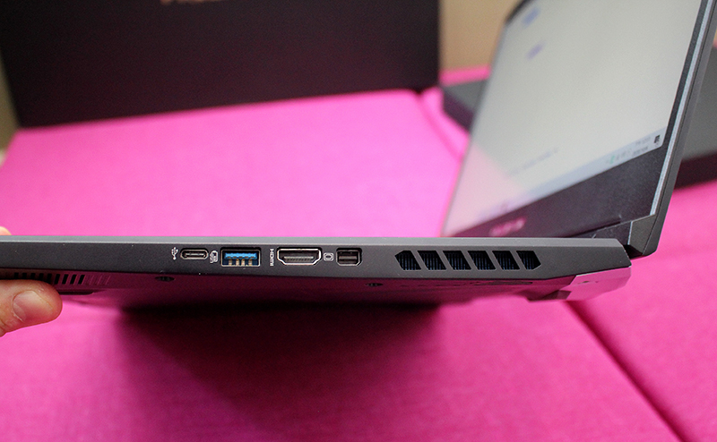 機身右側則規劃一組USB 3.2 Gen 2 Type-C,能支援DisplayPort影像輸出與手機充電技術,此外還增設一組USB 3.2 Gen 1 Type-A,以及一組HDMI 2.0數位影音端與MiniDP 1.4連接端,方便玩家接駁支援多螢幕使用。