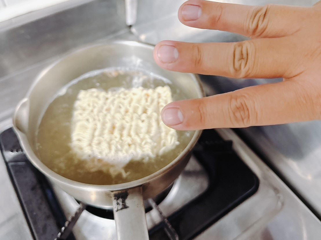 麵先加入,因為要煮黃金三分鐘