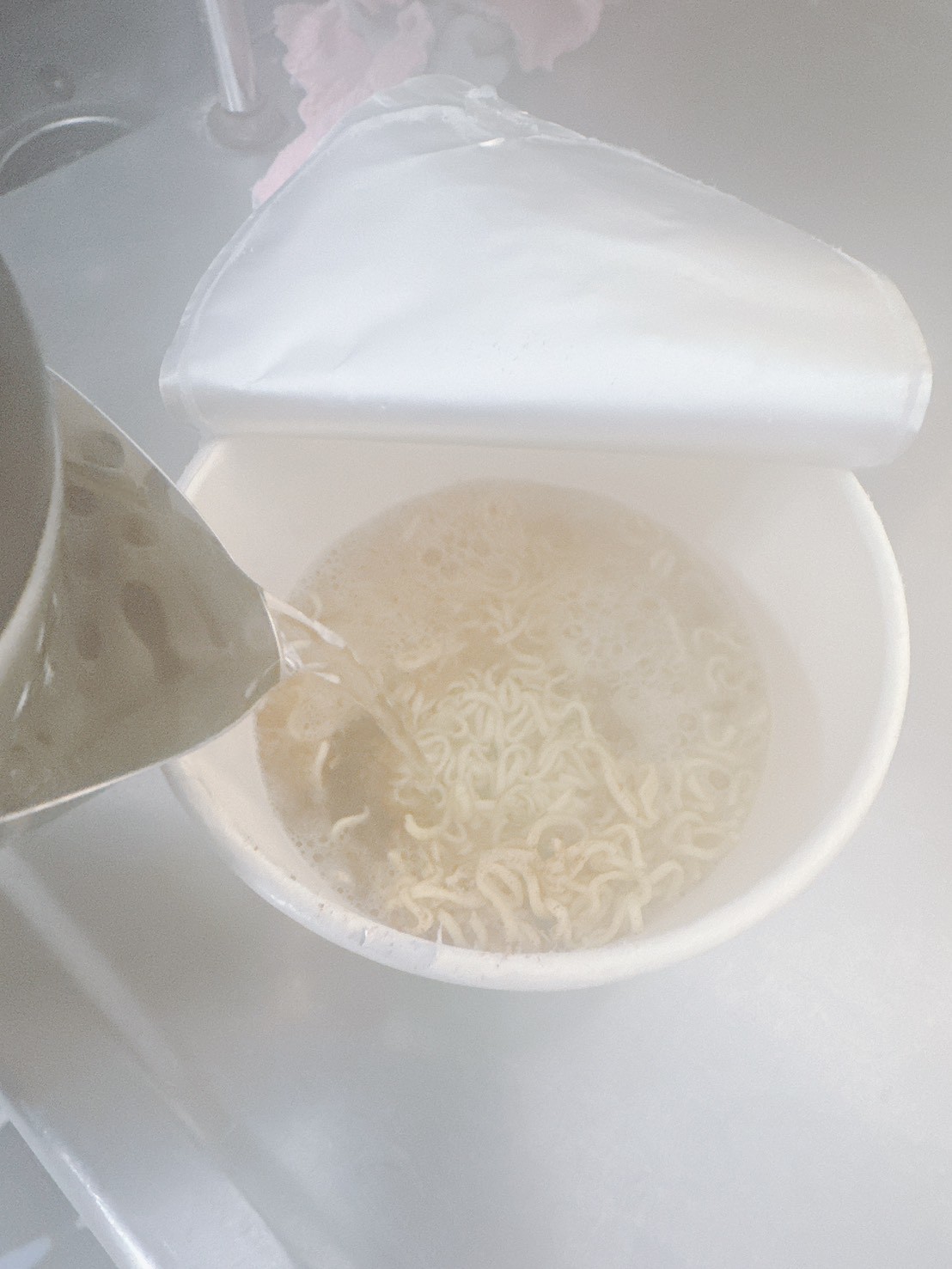 倒入熱水(在公司也能使用飲水機的熱水)