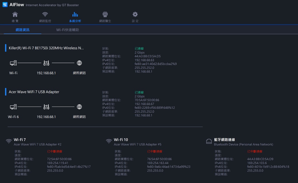 軟體支援 | Acer AIFlow 智慧頻段管理 |