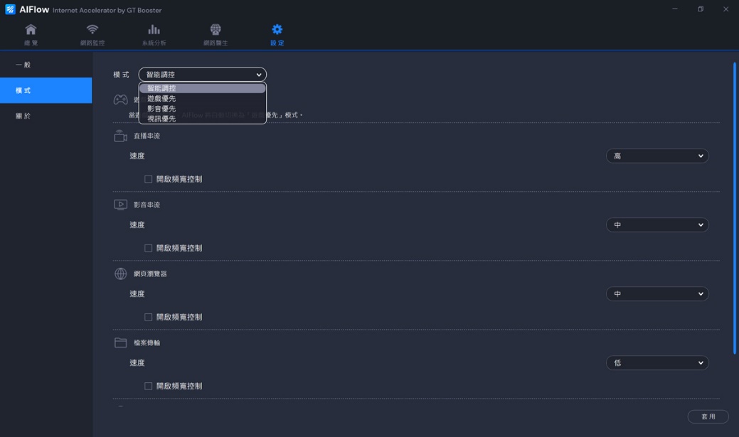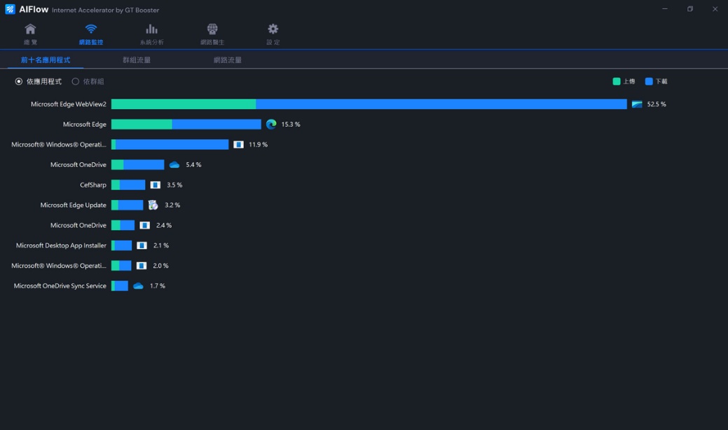- 搭配 AIFlow 應用程式,可即時監控網路流量、頻段運作與連線品質,並依使用情境(遊戲、串流、傳檔)自動優化設定。