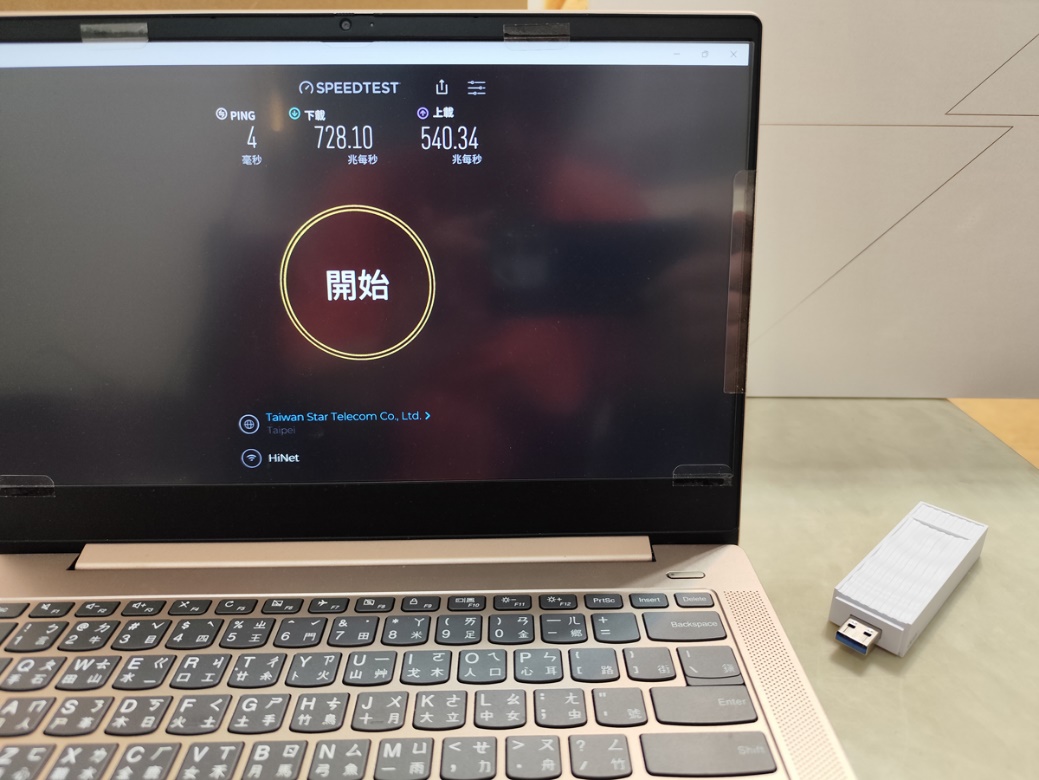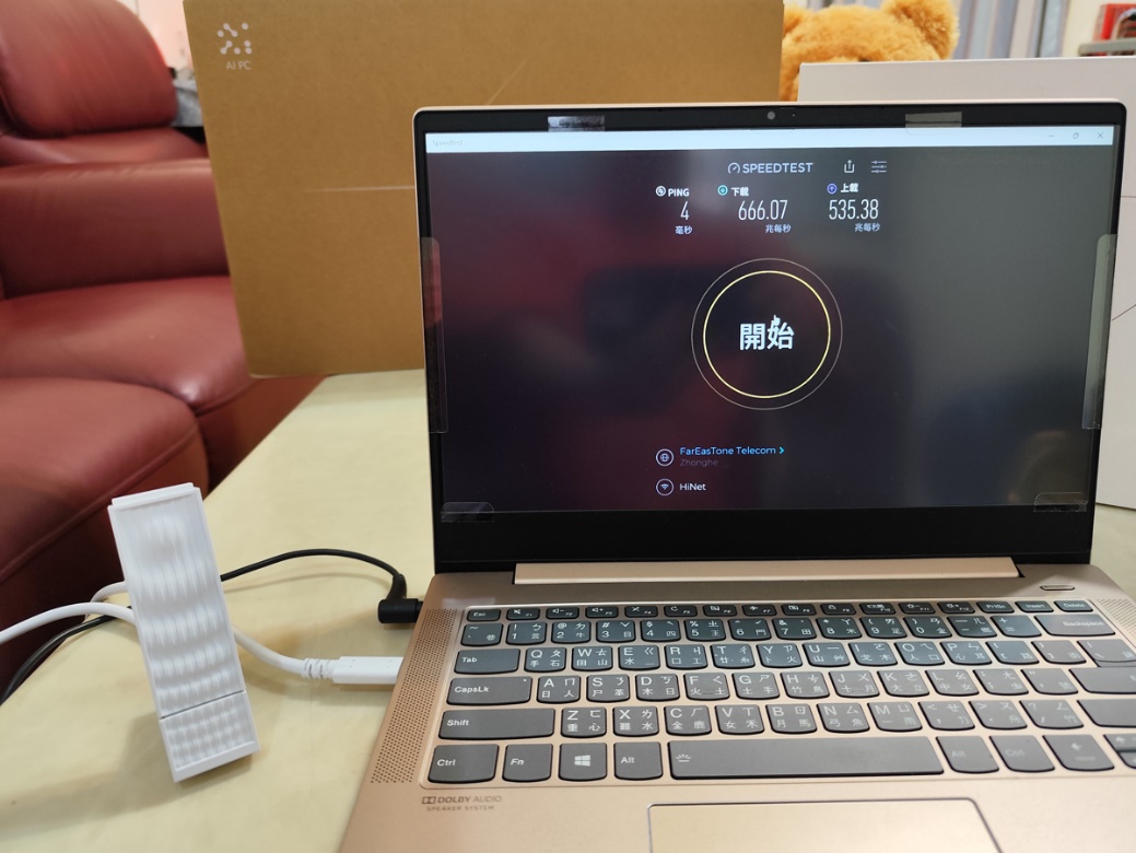 小編不是什麼硬派玩家啦~就是平常上班用電腦、偶爾追劇滑網的普通使用者,逼不得已在自家環境硬著頭皮測試,而我目前只有 Wi-Fi 6 路由器,所以這張網卡的真正實力沒法完全釋放。不過也因此能觀察它在向下相容、搭配 USB 3.1 Gen 1 接口時的實際表現。