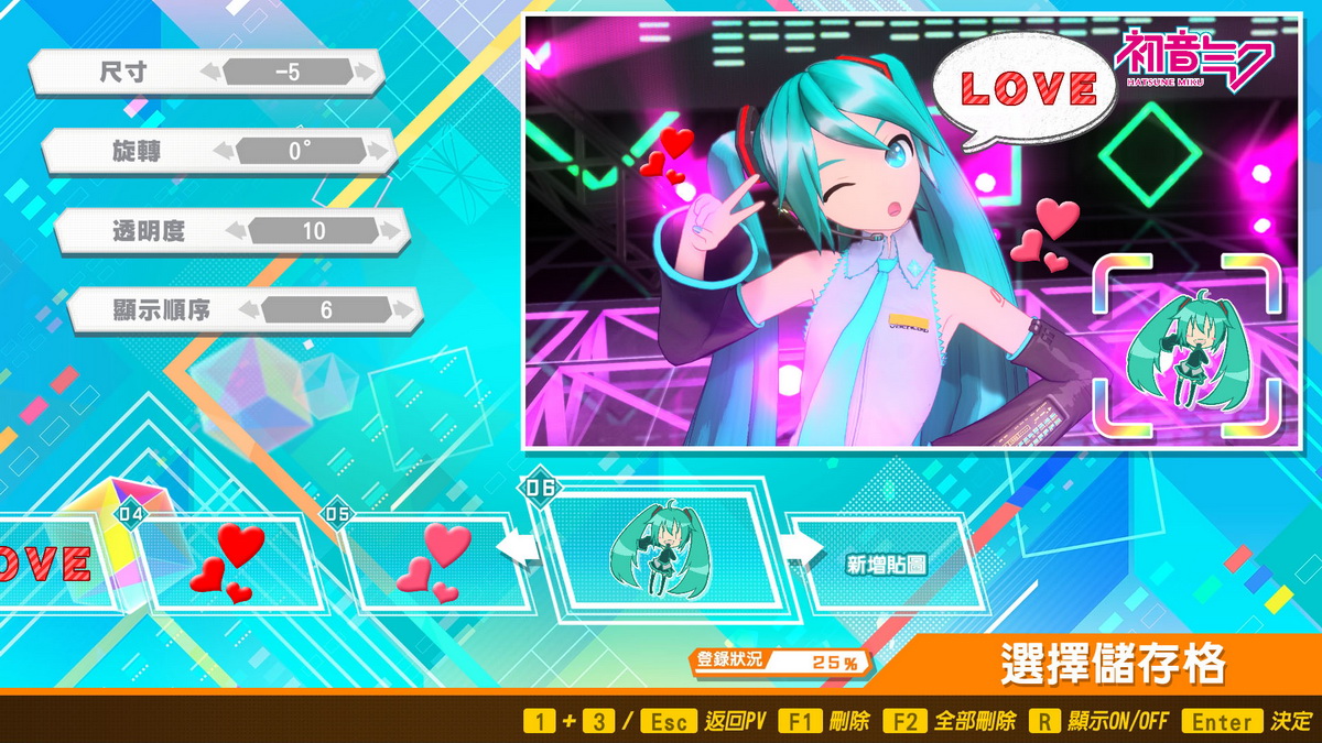 遊戲內建「PV照片模式」,讓您可在喜愛的一幕搭配各種貼圖,製作獨一無二的圖片。