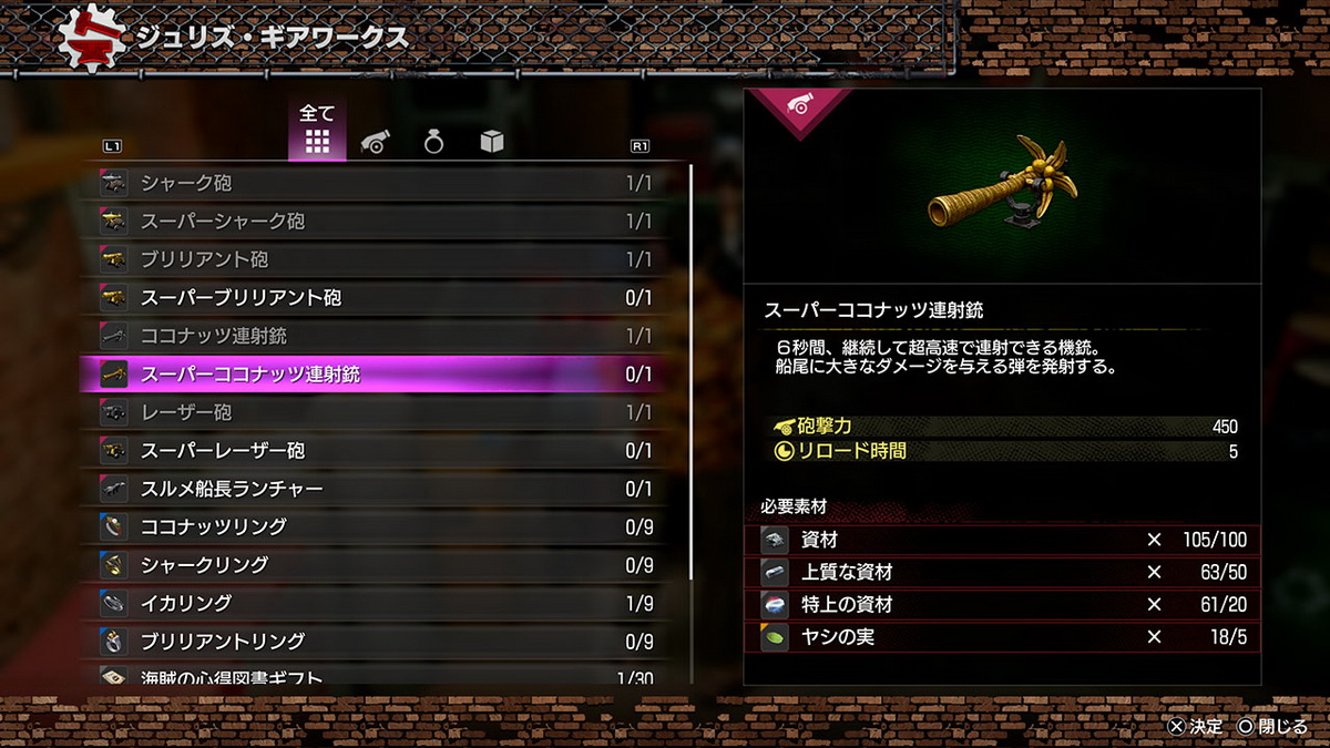 在Julie's Gearworks製作最強的裝備吧!可以使用收集到的材料,在位於夏威夷的「Julie's Gearworks」製作船隻大砲和真島的戒指等裝備。店內還能製作只有在此處才能獲得的強力裝備,收集足夠的材料後就過來一趟吧!