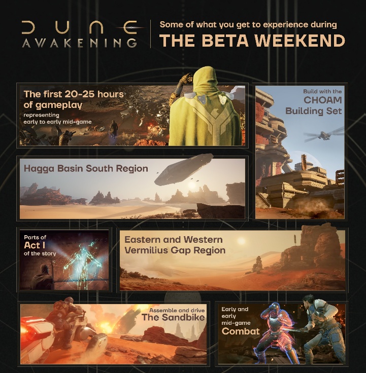 挪威Funcom工作室旗下大型多人線上生存遊戲新作《沙丘:覺醒(Dune:Awakening)》, 25日官方公布於5月9日至5月12日將舉辦大規模Beta測試的最新消息,並於5月10日進行全球直播,本次將於倫敦與PAX East現場同步連線,直播現場將釋出數萬組Beta測試序號,請期待的玩家們務必把握這難得的機會。親臨PAX East現場的玩家,則有機會搶先體驗遊戲喔!
