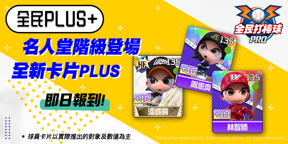 熱血運動手遊《全民打棒球Pro》推出全新「PLUS」卡片,玩家可體驗該卡種較強的能力值與強化的保底機制。此外,「名人堂(HF)」階級同步登場,將大大昇華玩家的夢幻隊伍!同時,遊戲內開啟嶄新即時對戰「平衡模式」,歡迎玩家即刻上線體驗全新內容,享受輕鬆贏球的樂趣。