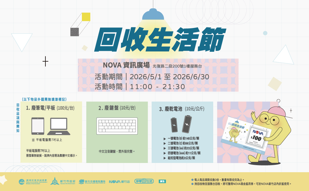 限時加碼:電腦回收 NOVA 再加碼送 100 元!