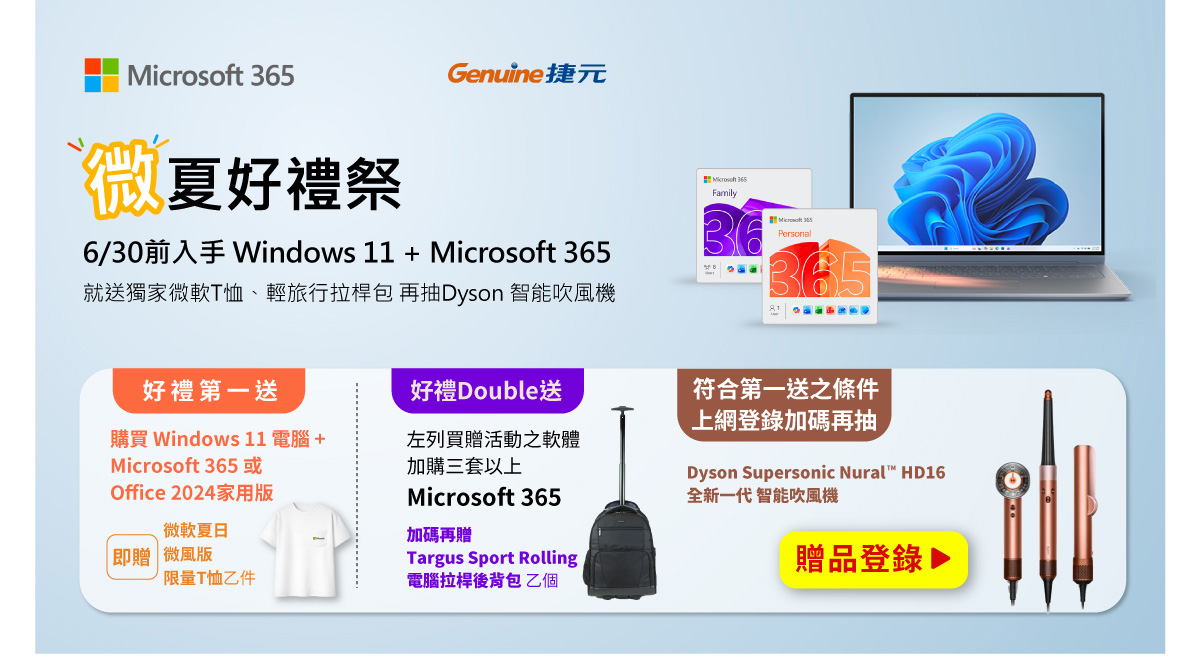 就送獨家微軟T恤、輕旅行拉桿包再抽Dyson智能吹風機