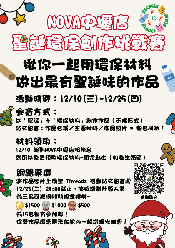 🎄【NOVA中壢店發起聖誕環保創作挑戰賽】🎄